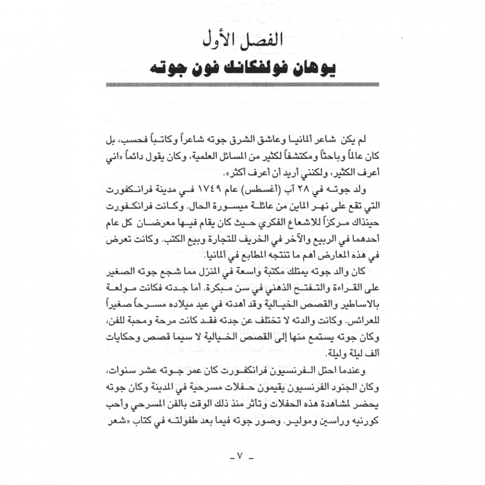 مجموعة من المقالات عن كاتب وشعر المانيا كوته وعن أهم مسرحياته ورواياته التي تأثر فيها بأشعار المعلقات وقصص ألف ليلة وليلة الخياليه وكان كتاب الغرب ينصحون الشباب بقراءة قصص ألف ليلة وليلة لأنها تنمي الخيال .